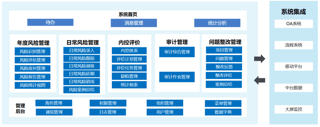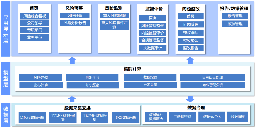 基于自产和内外部数据,以软件平台为载体,应用人工智能算法进行数据的建模分析和应用,动态揭示预警风险和发现问题,循迹通过咨询完善内控管理水平。